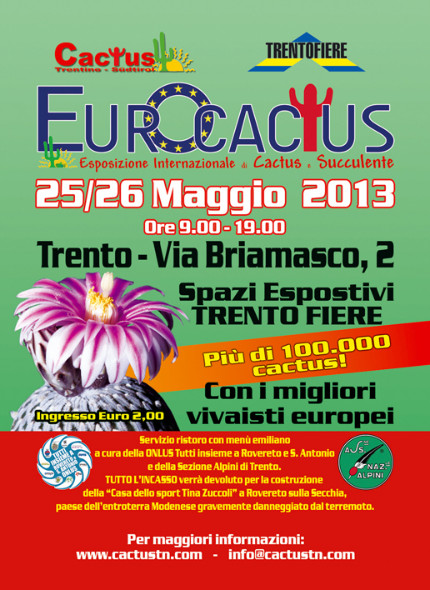 Fiera dedicata al Mondo dei Cactus e delle Succulente che si svolgerà nel centro fiere di Trento (TN) dal 25 al 26 Maggio 2013, vendita al pubblico di piante provenienti da tutto il Mondo, terricci, concimi ed attrezzature per il settore.